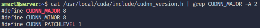 cat /usr/local/cuda/include/cudnn_version.h | grep CUDNN_MAJOR -A 2