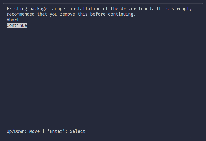 여기서 뜨는 WARNING은 graphic driver를 같이 설치하지 않아서 뜨는 것