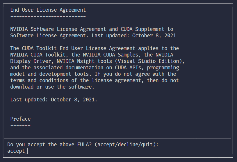 sudo sh cuda_11.8.0_520.61.05_linux.run