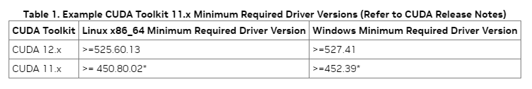 권장 버전 확인 후 혹시 모르니 https://docs.nvidia.com/deploy/cuda-compatibility/ 에서 최소 권장 version도 확인