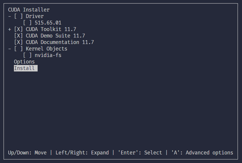 sudo sh cuda_11.7.1_515.65.01_linux.run