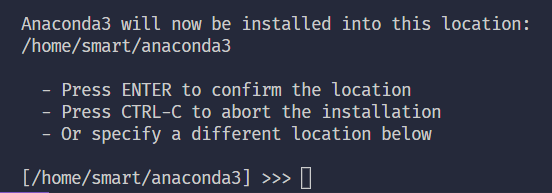 기본 경로는 /home/{user}/anaconda3 이나 바꾸고 싶으면 원하는 경로를 입력해주면 된다