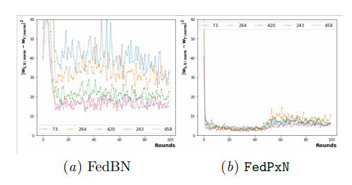 Hypothesized that a proximal term inspired by FedProx will help the local models in FedBN to progress towards the global optimum, as image(b) shows.